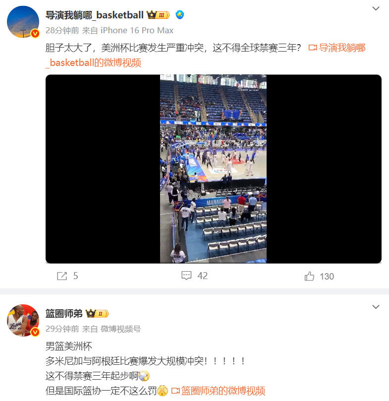 正因为如此,这次美洲杯的群殴事件才会让一些辽宁自媒体人破防,他们表示:“男篮美洲杯多米尼加与阿根廷比赛爆发大规模冲突!这不得禁赛三年起步啊,但是国际篮协一定不这么罚。”